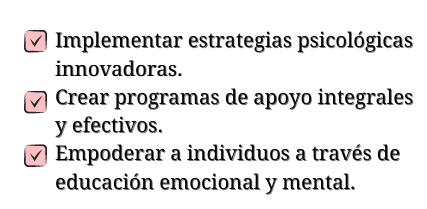 En Femtuser proporcionamos apoyo emocional y recursos de autoayuda accesibles a todos aquellos que buscan mejorar su bienestar y encontrar un propósito significativo en sus vidas. Nos esforzamos por: